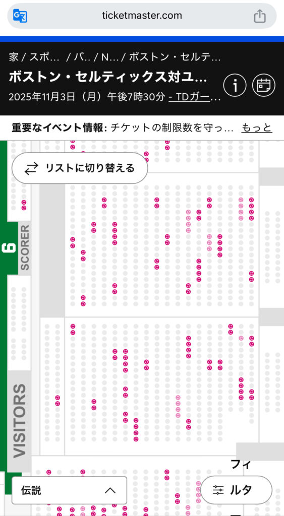 Ticketmasterでセルティックス戦を購入する最初のステップは、観戦したい試合を見つけることです。セルティックスは全試合がTicketmaster上で公式販売されており、唯一の一次販売元となっています