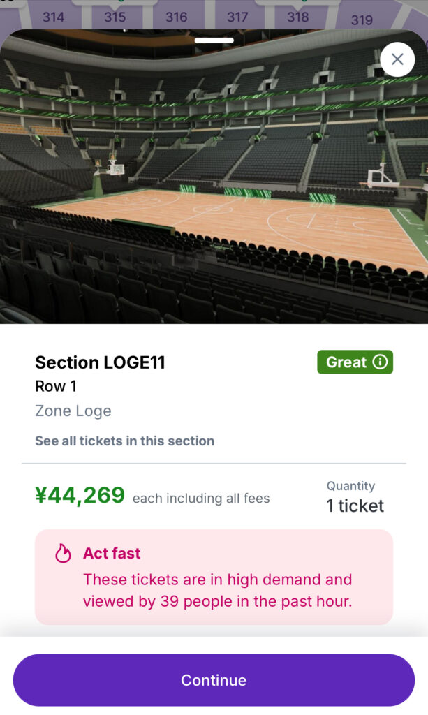 セルティックス戦のチケットは、表示額=支払額ではありません。Ticketmasterはチケット本体に加えて購入画面でサービス料・処理料が上乗せされ、目安は10~20%+数ドルの注文処理料。たとえば$100の席なら合計$122前後になる計算です。最近は米FTCの新ルールに合わせて“総額表示”が進み、初期表示から手数料込み価格が出るケースが増えましたが、最終確認画面の税込み総額は必ずチェックしましょう。