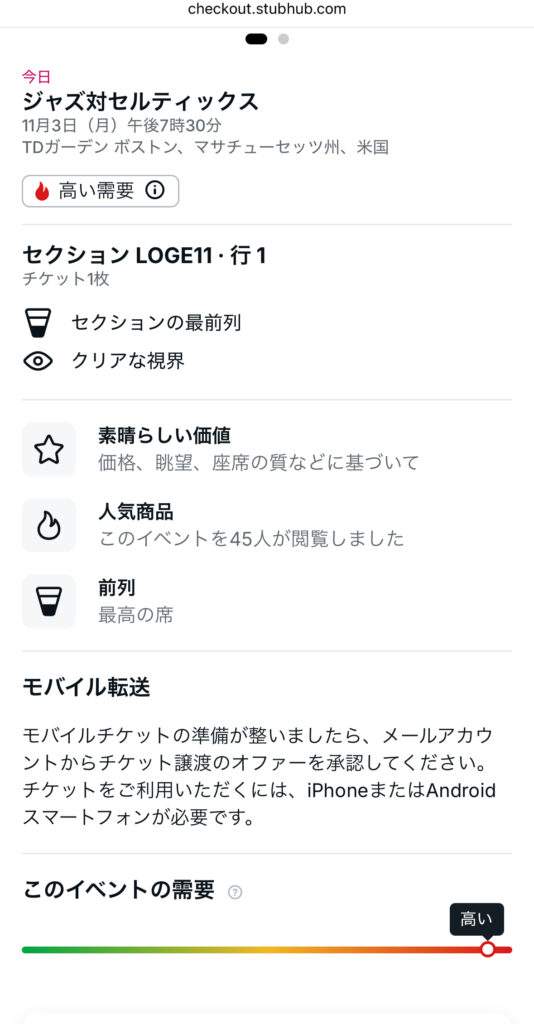 再販サイトでの購入時(例:StubHub)には「モバイル転送」タイプや「PDF印刷」タイプのチケットがあり、アプリでの読み込みが前提の場合もあります。