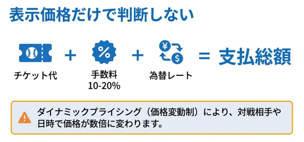 StubHubもTicketmasterもSeatGeekも、検索フィルターに「All-in pricing(手数料込み表示)」のスイッチがあります。これを必ずオンにして、最初から支払い総額で比較するようにしましょう。