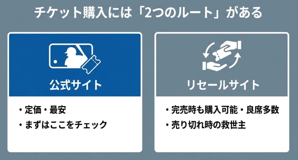 怪しいダフ屋ではなく、球団公認または大手のプラットフォームを通すことで、安全にチケットを売買できる仕組みが整っています。