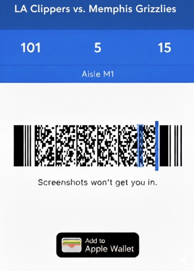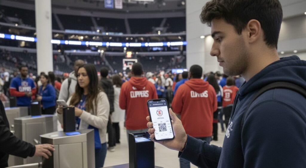 クリッパーズを含むNBAの試合は、現在ほぼ完全にモバイルチケット制へ移行しています。紙チケットの郵送やPDF印刷は原則不可で、スマートフォンでの提示が入場の基本です。