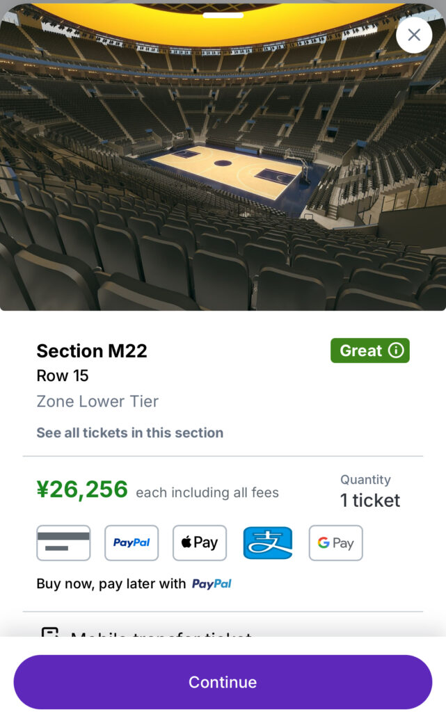 - 週末×ライバル戦/八村出場期待の注目戦→ 発売初動はTicketmasterに全力、外したらStubHubで列・ブロック指定で“納得の良席”を拾う。