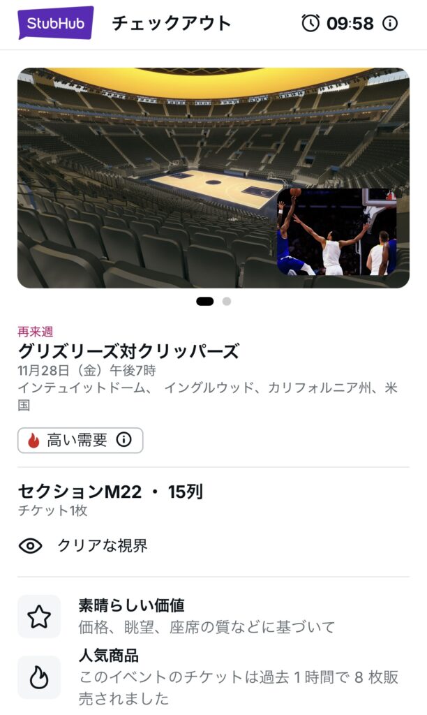 なお、NBAはテレビ放送の都合などでキックオフ時間が数時間動くことがあり、この場合も購入済みチケットは振替後の日程で有効となるのが基本。合わなくなったら、自分でリセールに出して処分するのが定石です。