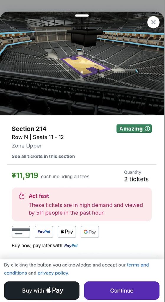 また、NBA公式パートナーであるため、チケットの出どころが明確で、偽チケットや無効チケットの心配が一切ないという点も大きな安心材料です。初めて海外サイトでチケットを購入する方にとって、「公式」という信頼性は何より心強い要素と言えるでしょう。