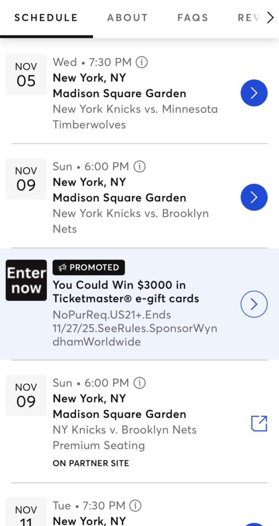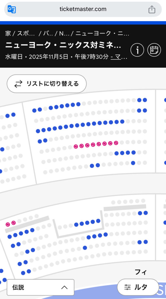 2) Ticketmasterのニックス公式ページで一次流通の在庫と価格を確認する(公式マーケットプレイス)。
